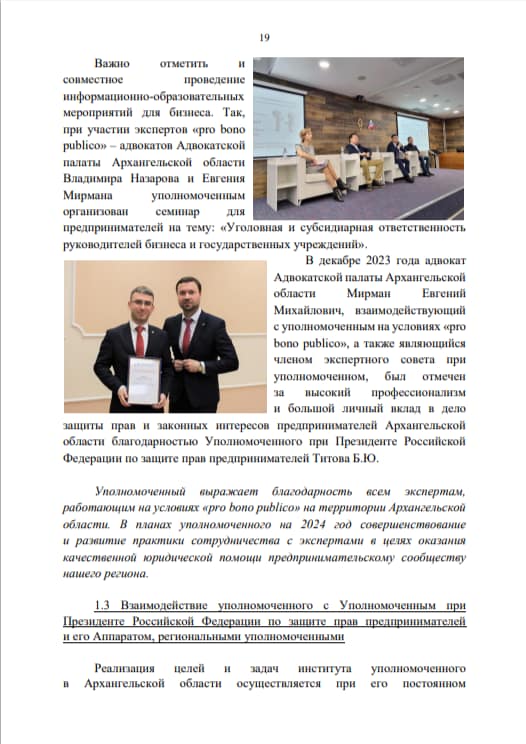 С 2022 г. мы активно сотрудничаем с Бизнес-омбудсменом Архангельской области в качестве экспертов pro bono.